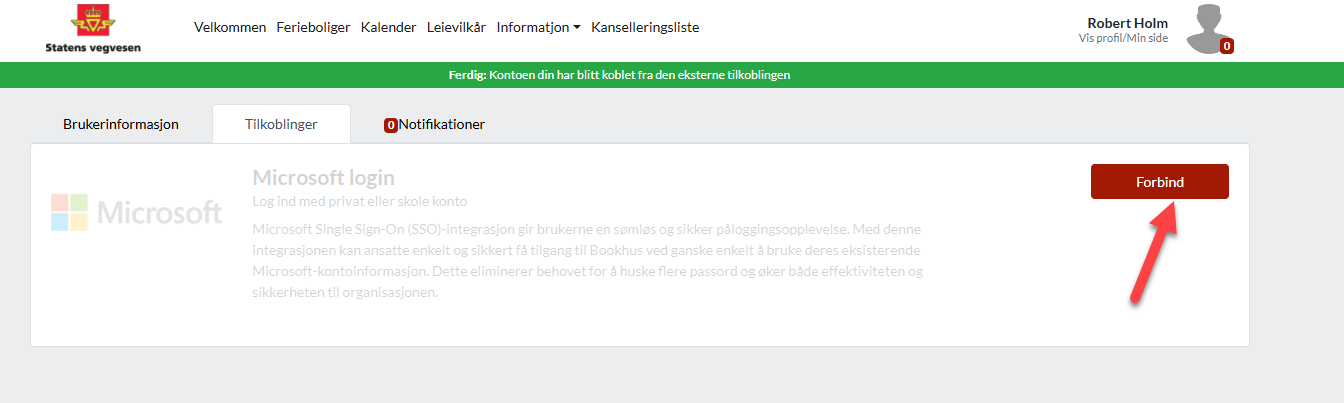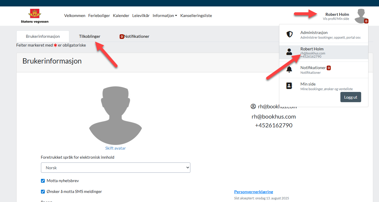 Klikk på "Vis profil/Min side" oppe i høyre hjørne, og deretter på Brukerprofil. Velg deretter fanen Tilkoblinger.